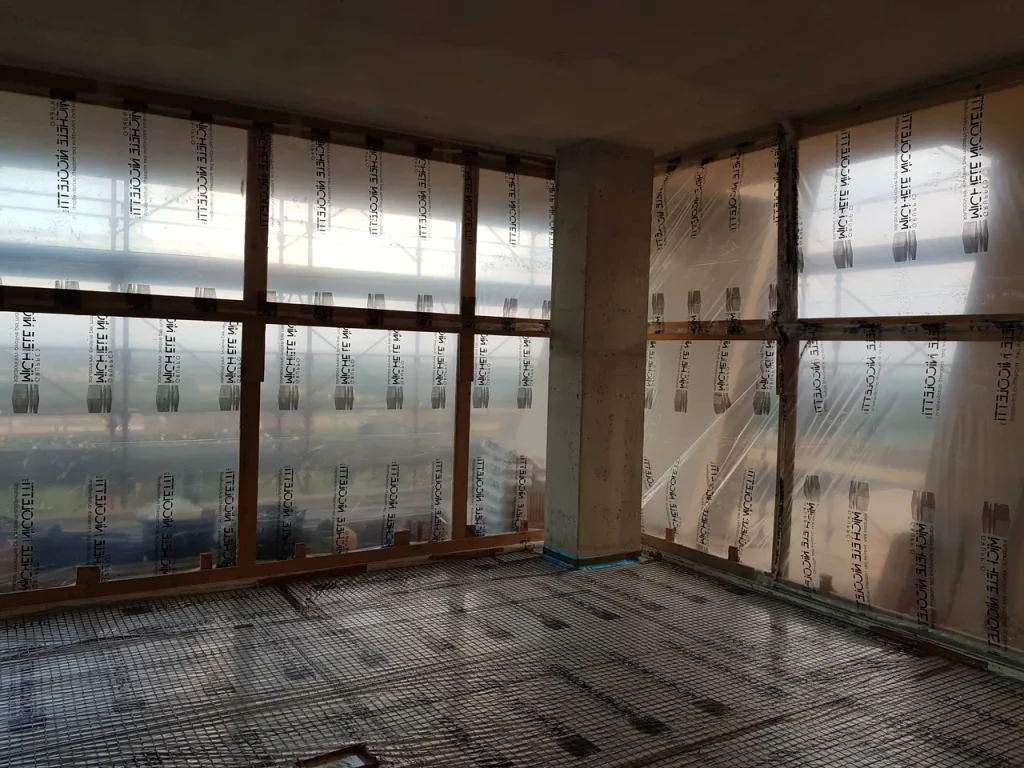 Realizzazione di sottofondo alleggerito a copertura impianti e massetto autolivellante su isolante termico