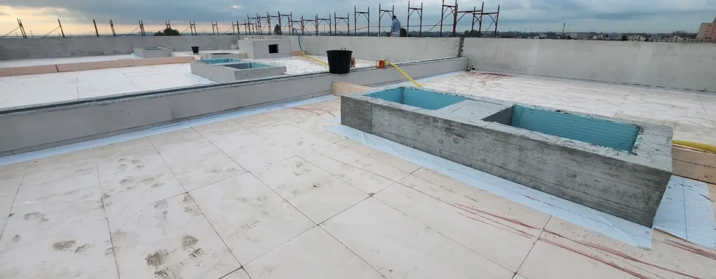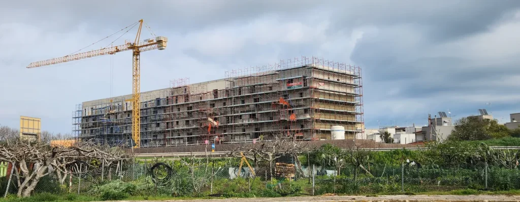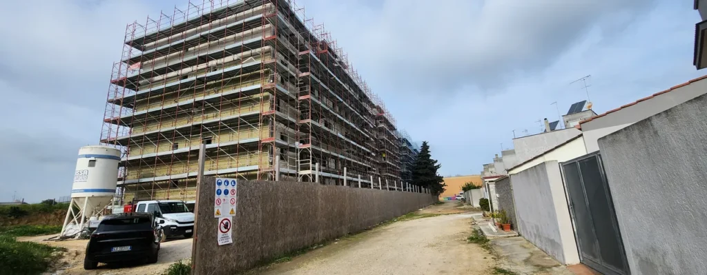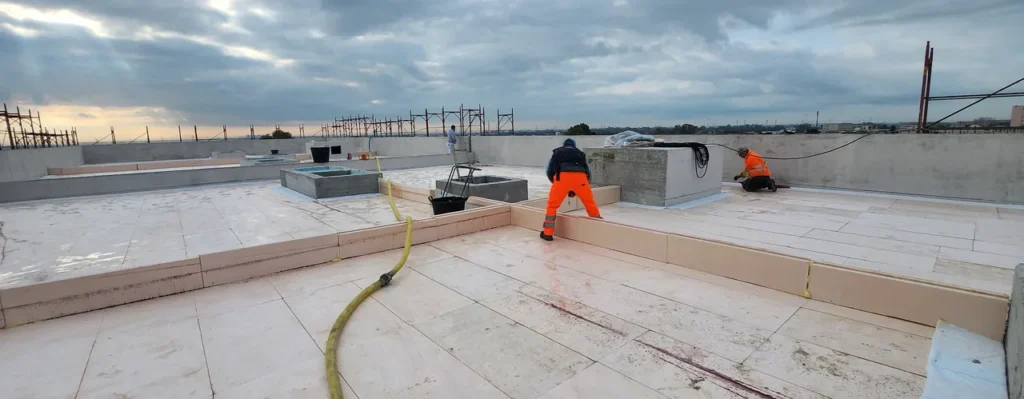 Cantiere brindisi realizzazione di 100 alloggi di edilizia residenziale. Realizzazione di sottofondi alleggeriti a resistenza su solai di copertura per la formazione di massapendii. Realizzazione di sottofondi alleggeriti a copertura impianti e realizzazione di massetti autolivellanti su sistemi radianti a pavimento