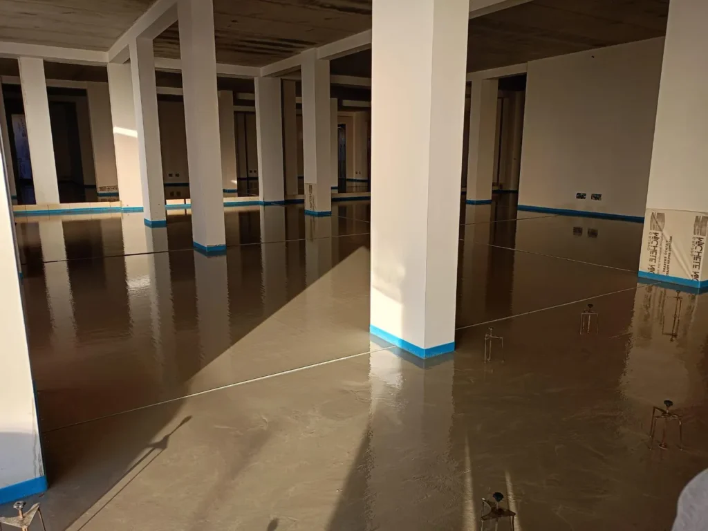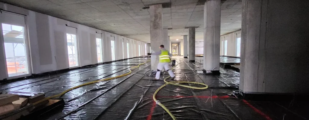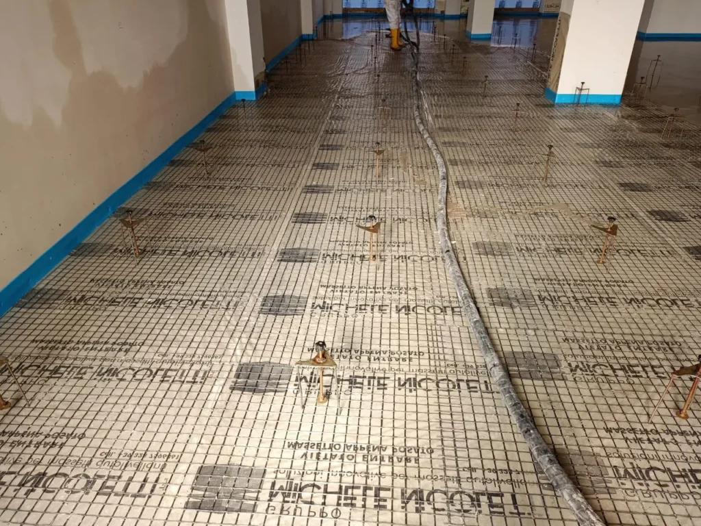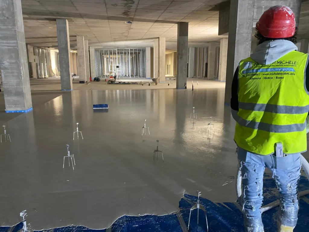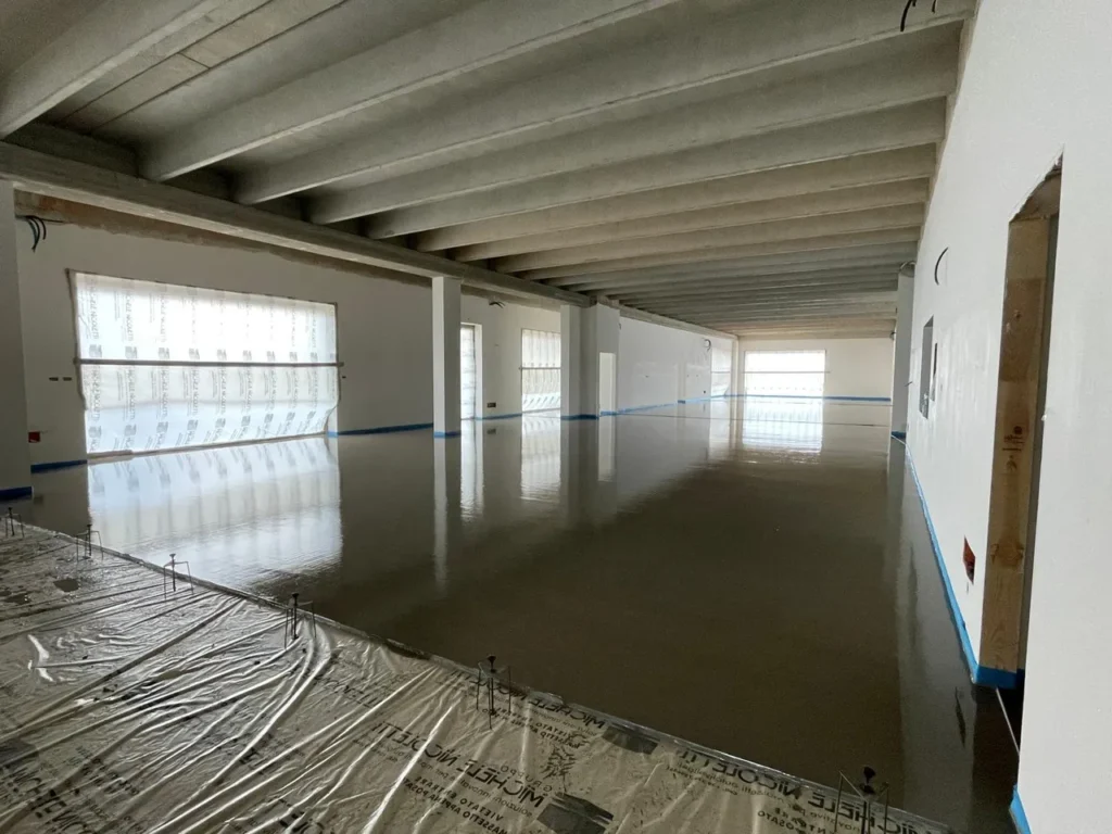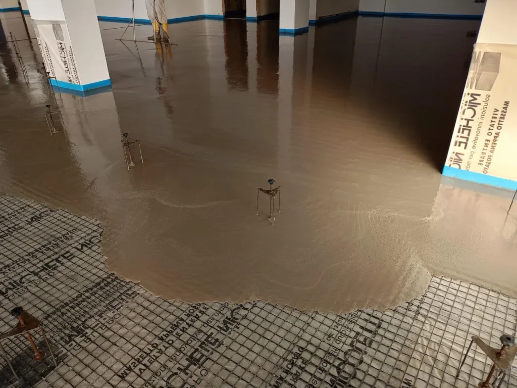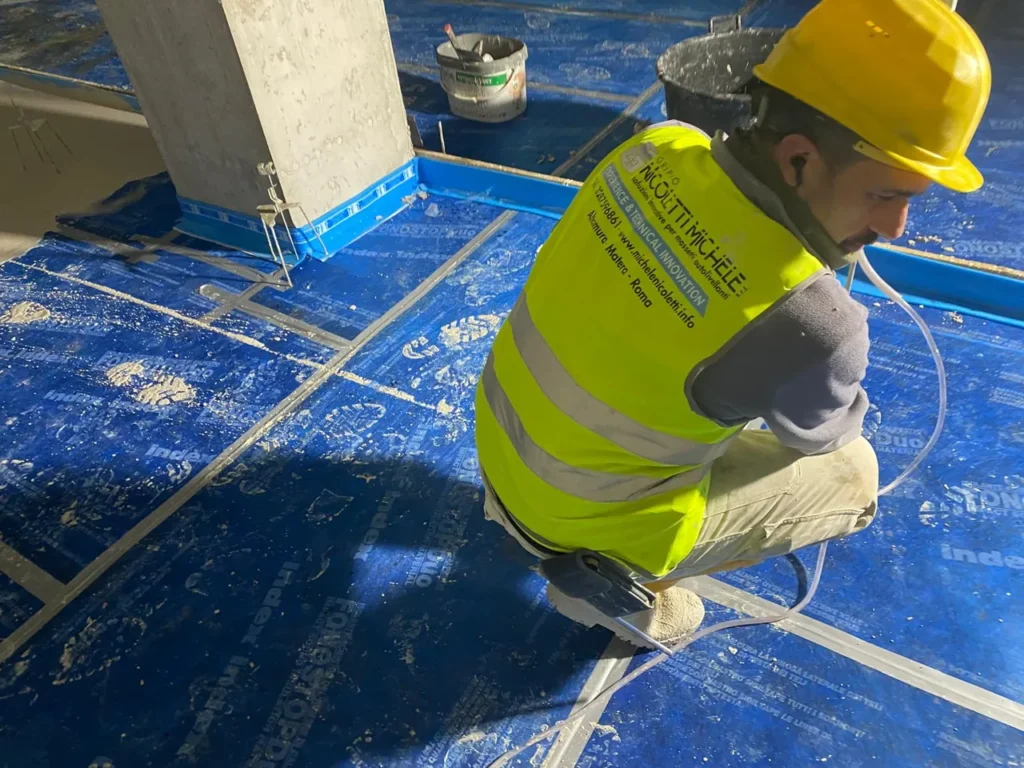 Realizzazione di sottofondo alleggerito a copertura impianti e massetto autolivellante su tappetino acustico
