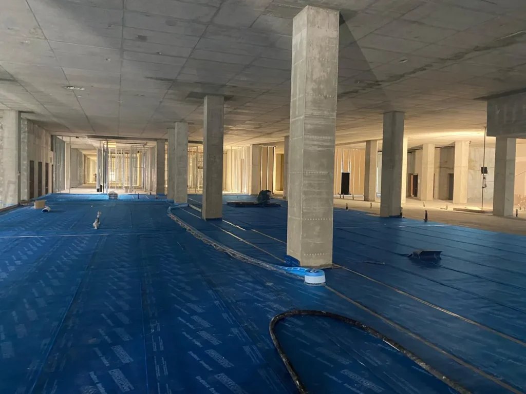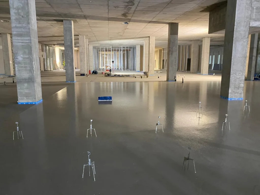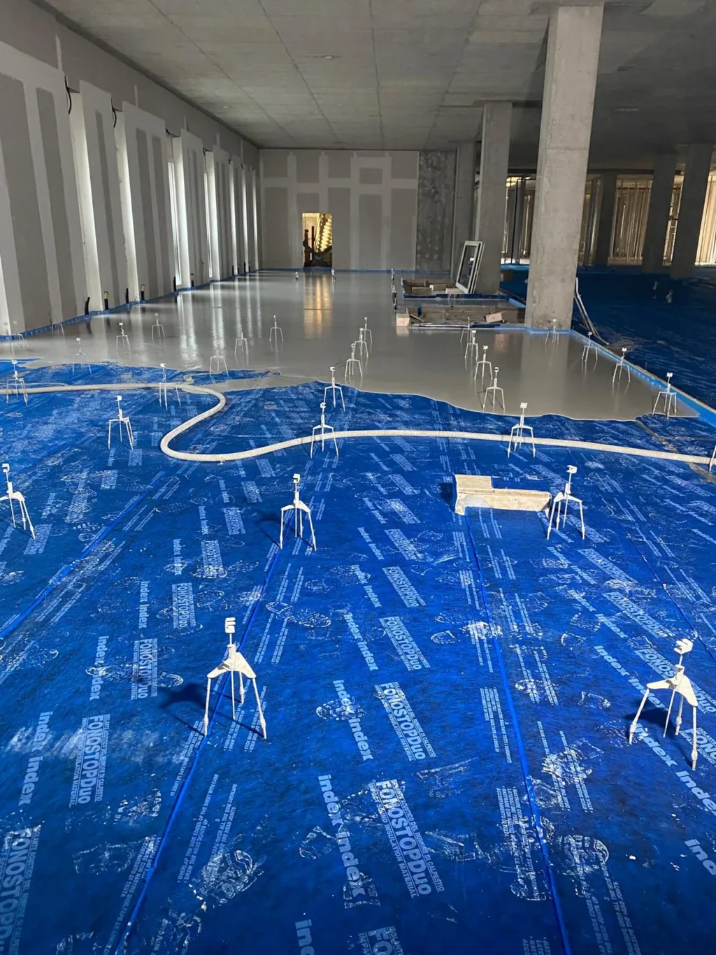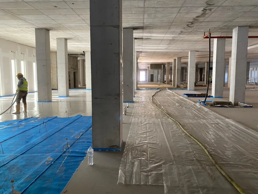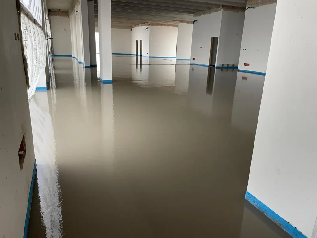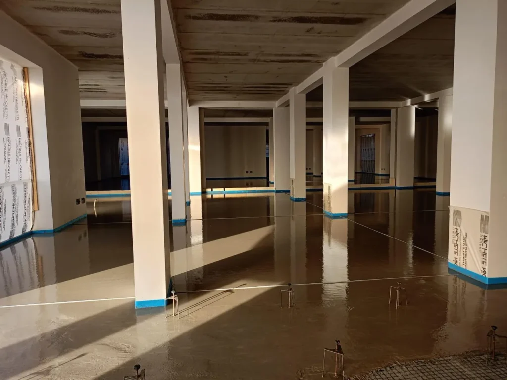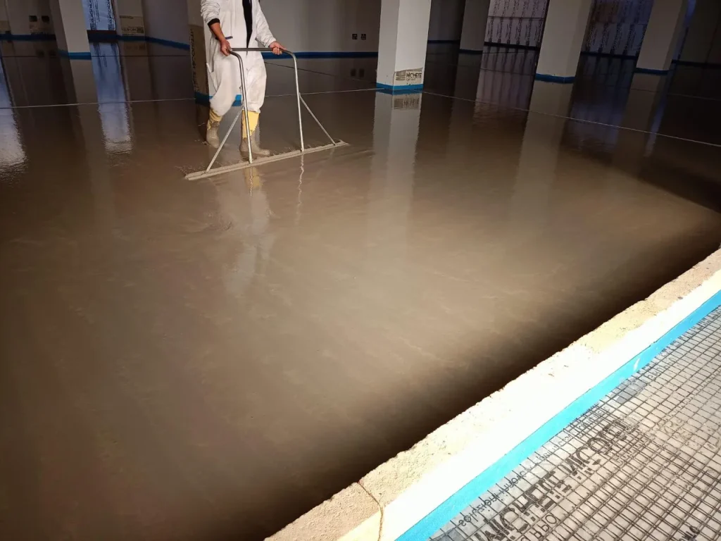 Realizzazione di sottofondo alleggerito a copertura impianti e massetto autolivellante su tappetino acustico