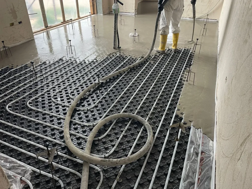 Realizzazione massetto autolivellante su impianto radiante a pavimento